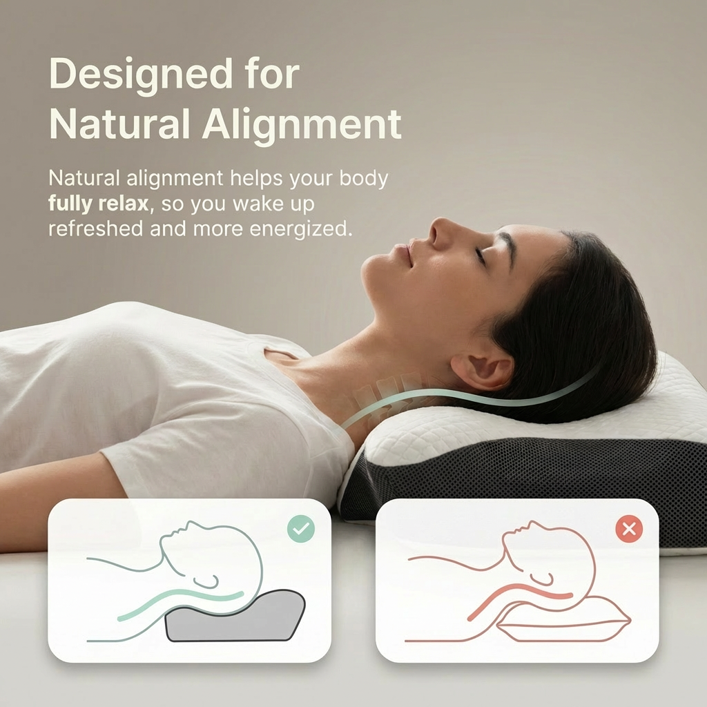 The front contour and center hollow help reduce neck strain by keeping your head and spine in a more natural position — instead of forcing your neck upward like traditional pillows. Many stomach sleepers find they feel less tension and wake up more refreshed.